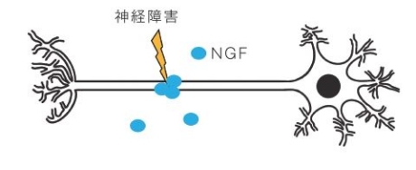 痛みの原因となる神経障害の修復にはNGFなどの神経栄養因子が関与していることが報告されています。磁界照射によりNGFの産生を調整し、神経細胞の保護、再生を促進します。