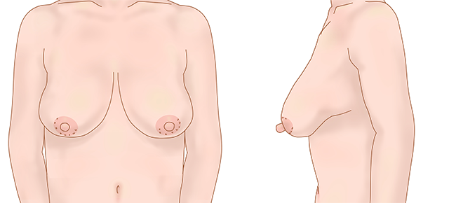 乳房下垂Ⅲ度の重症の乳房下垂の場合に用いられます。