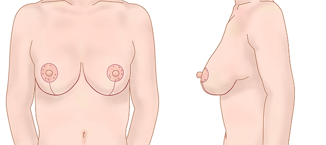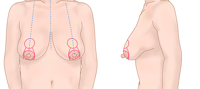 余剰皮膚、および過剰な乳腺組織を切除し乳房の形を整えます。切除デザインは、乳房の大きさや年齢を考慮して決定します。