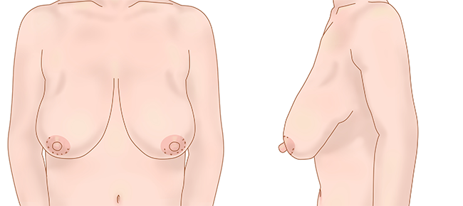 乳房下垂Ⅱ度(中等症)の乳房下垂に用いることが多い術式です。