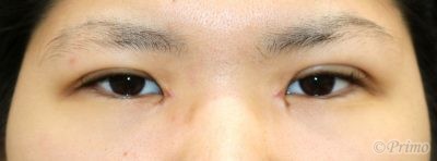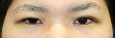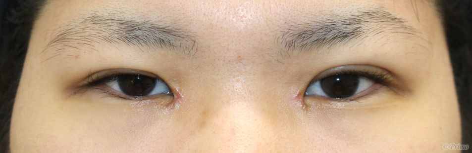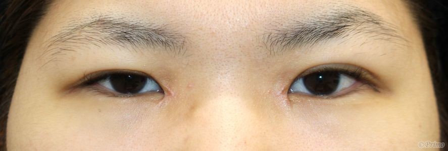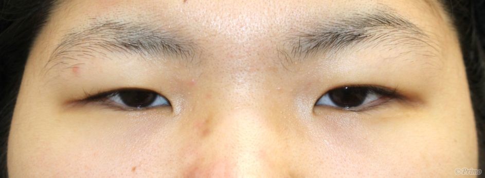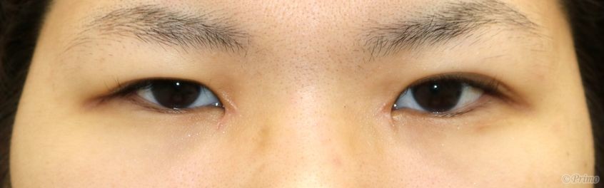 手術前の目元です。 自然な変化で目を大きくしたいという希望から、 全切開+上眼瞼脱脂術、目頭切開を行いました。