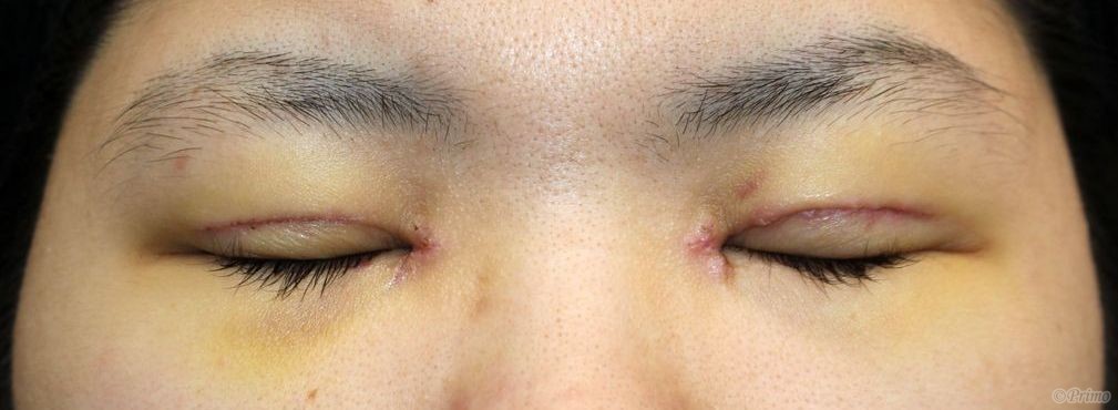 全切開+上眼瞼脱脂術+目頭切開手術後2週間です。