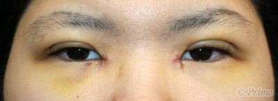 全切開+上眼瞼脱脂術+目頭切開手術後1週間です。