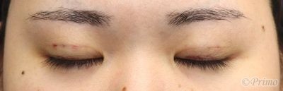 二重埋没6点固定+上眼瞼脱脂術を行いました。