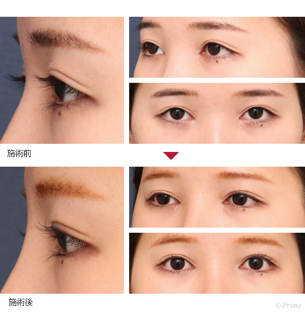 ラインの消失、瞼の形態の変化、顔の印象の変化
