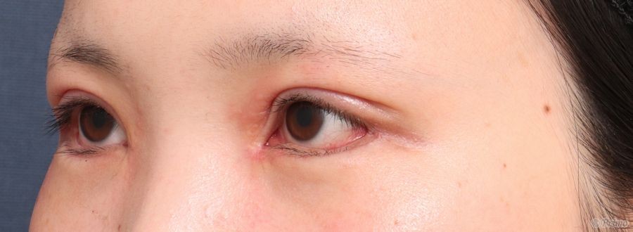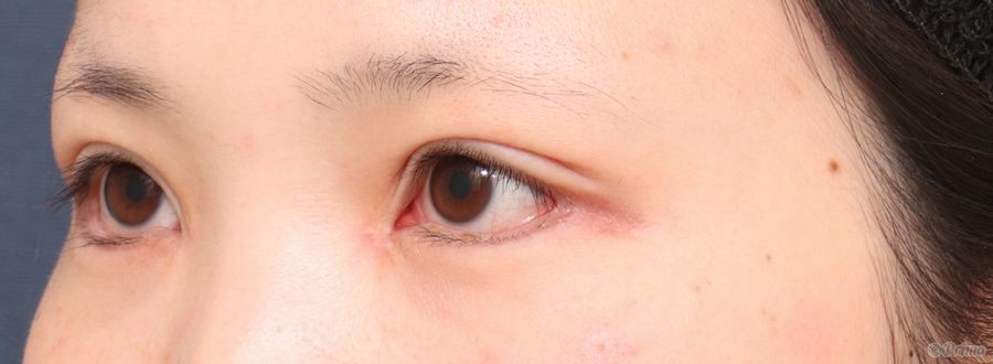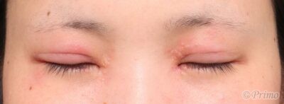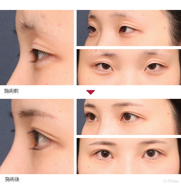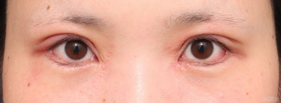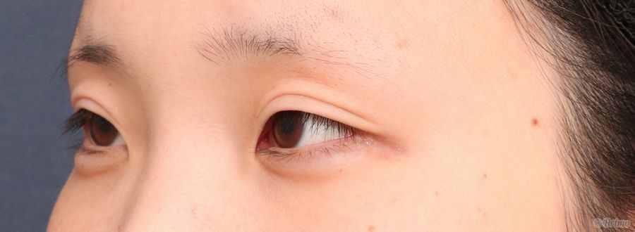まぶたの開きが悪く改善したいのと、たれ目にして目を大きくしたいというご希望から、