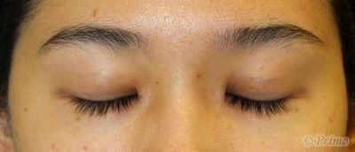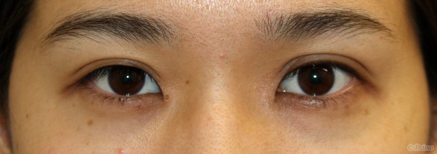 二重埋没法6点固定手術後6か月です。 術後は綺麗な平行型二重になりました。 眉毛も降りて睫毛と眉毛の距離が狭くなりました。