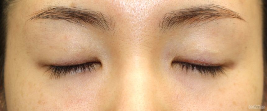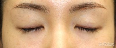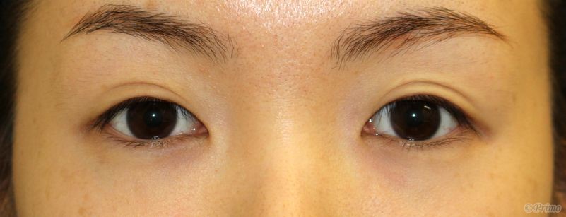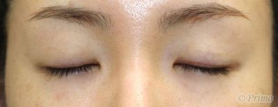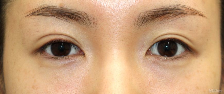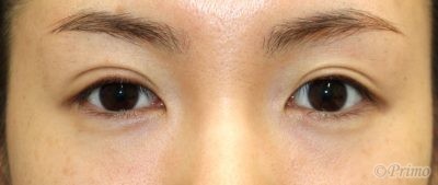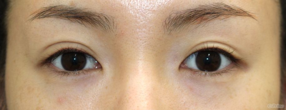 手術前の目元です。 術前は他院で行われた埋没法による二重があいまいになっている状態でした。 ご本人の希望から右のみ幅をもう少し広くしたいということで、 当院で二重埋没法6点固定を行いました。