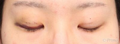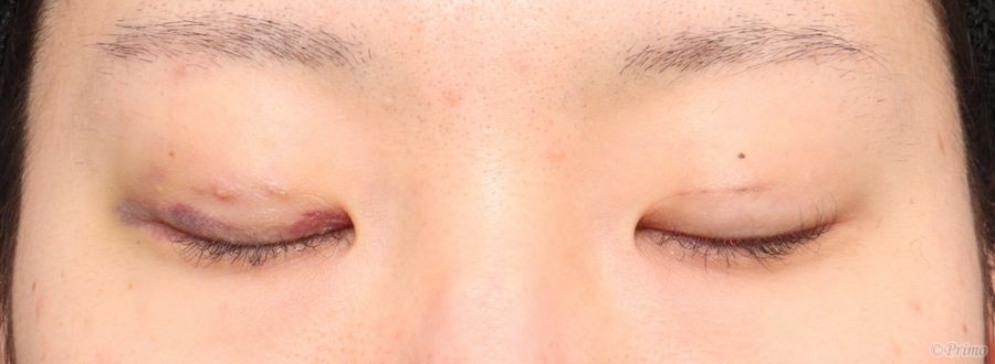 手術後2週間の目を閉じたところです。