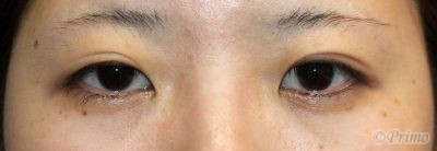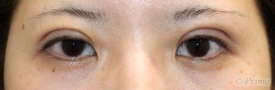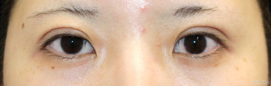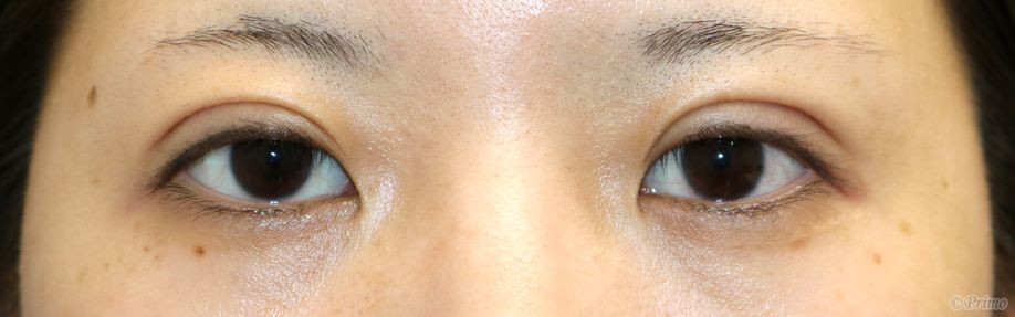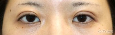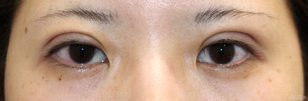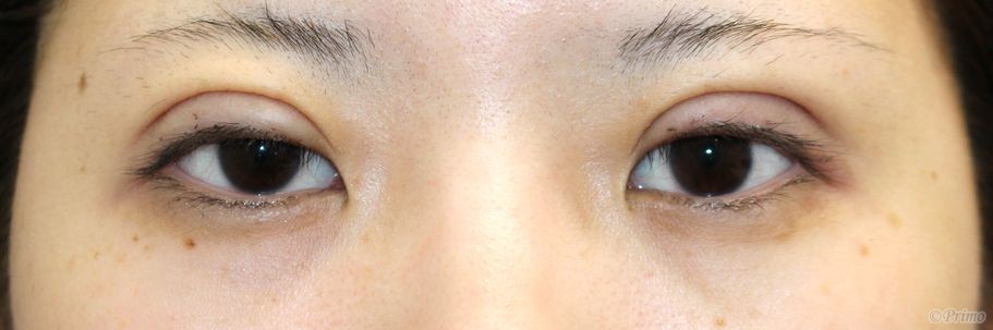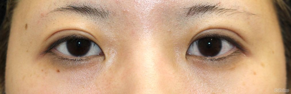 手術前の目元です。 1~2年前に他院で埋没法2点固定手術を受けていらっしゃいました。 平行型の二重をご希望とのことで、当院で全切開+上眼瞼脱脂術を行いました。