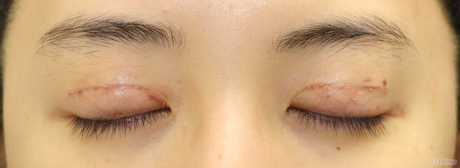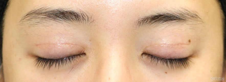 目元がすっきりしてはっきりした平行型二重が形成されました。