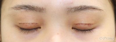 手術後2週間の目を閉じたところです。