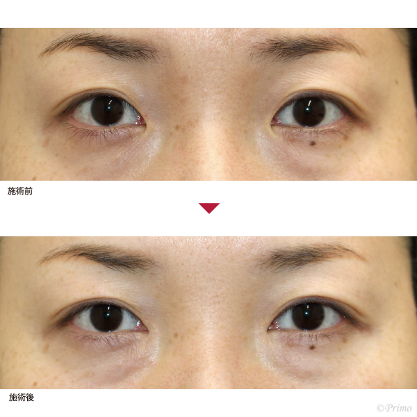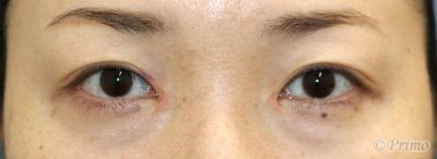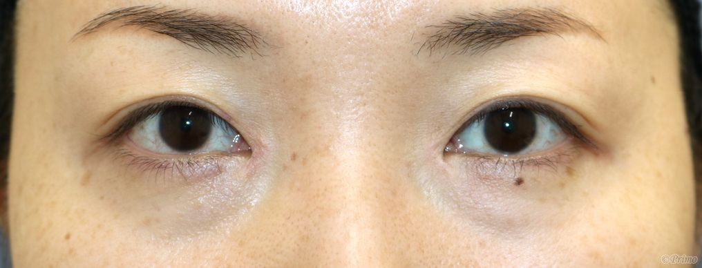 手術前の目元です。 術前は当院で7年前に埋没法を受けていらっしゃいました。 目頭の皮膚の被さりが気になり改善したいということで、 目頭切開手術を行いました。