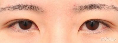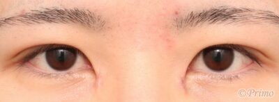 VY法による目頭切開手術によって下の蒙古襞やや小さくなり、被さりが控えめになりました。
