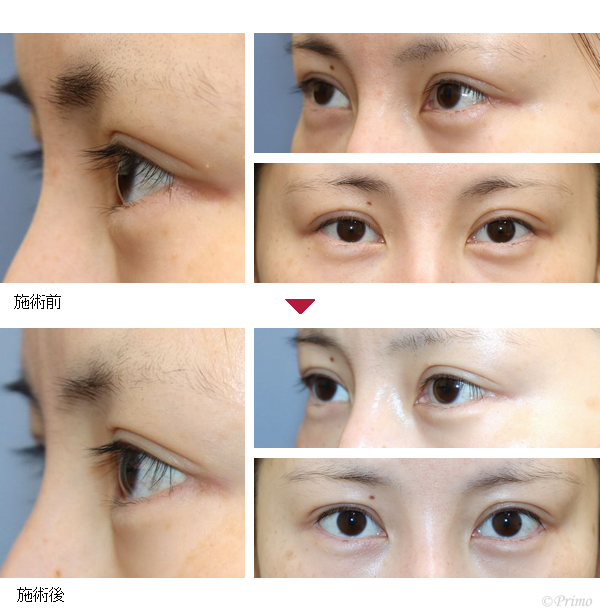 術後は下眼瞼拡大術+目尻切開術の効果で目が外側下方向に大きくなりました。
