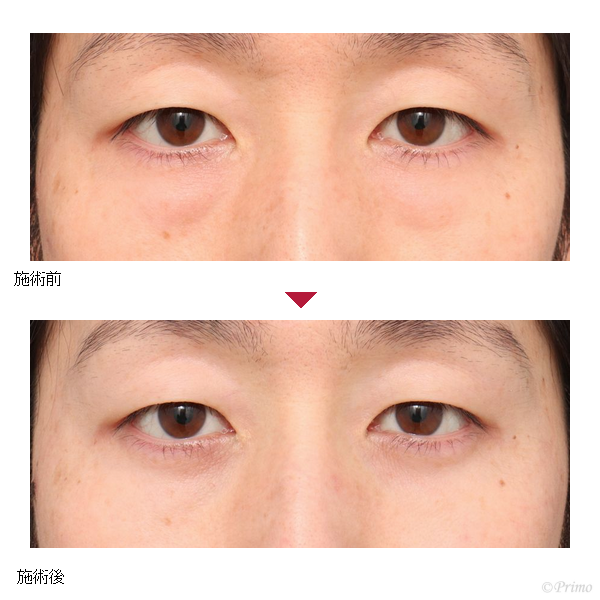目の下のたるみをなくしたいというご要望から、当院で下眼瞼脱脂術を行いました。