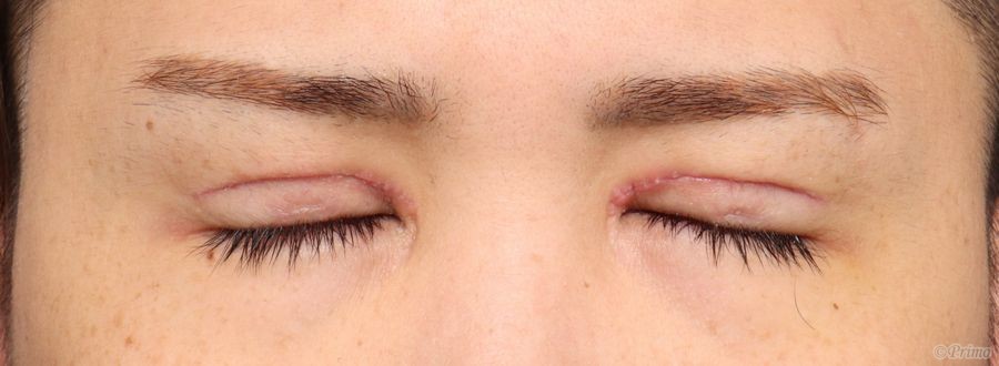 手術後2週間の目を閉じたところです。