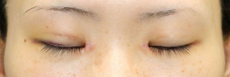 手術後3ヶ月の目を閉じたところです。