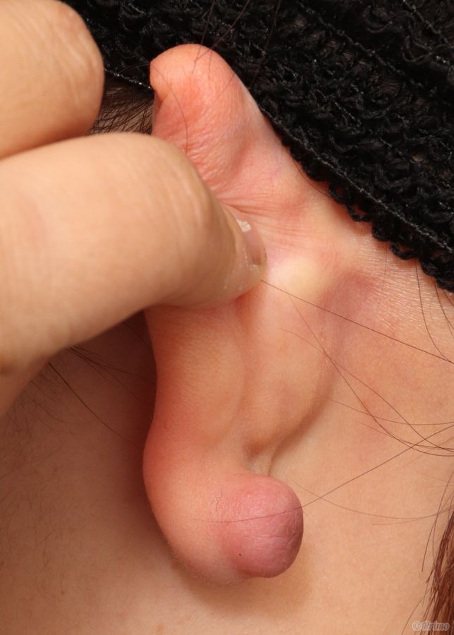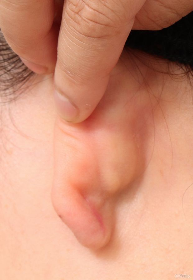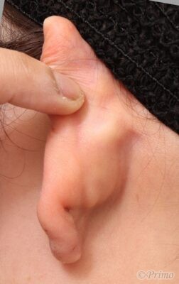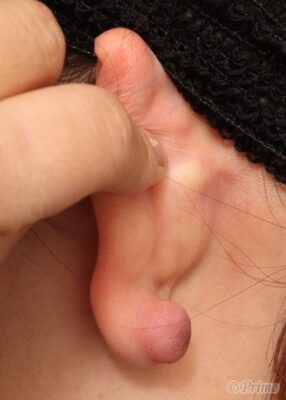 耳たぶが大きく盛り上がっています。
