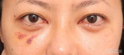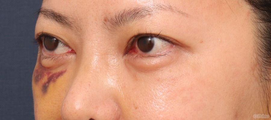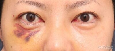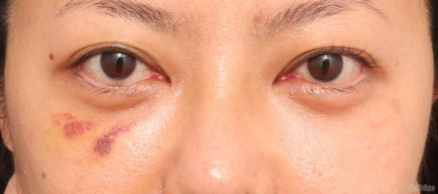 右下眼瞼に内出血がありますが次第に目立たなくなり消失します。