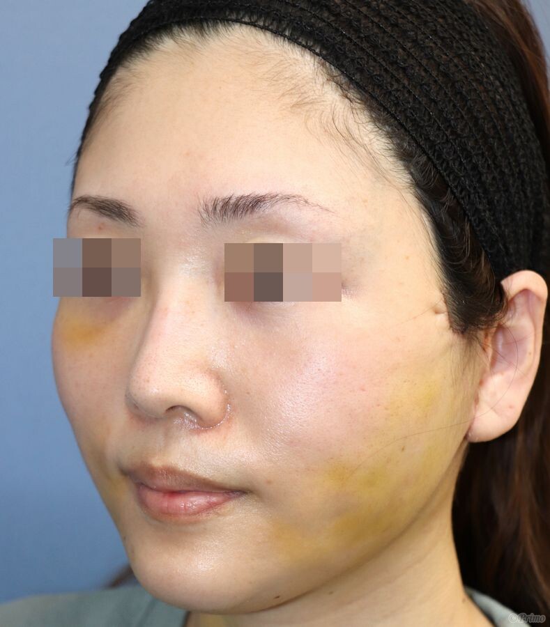 頬部フェイスリフト+頬顎脂肪吸引手術後2週間です。