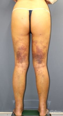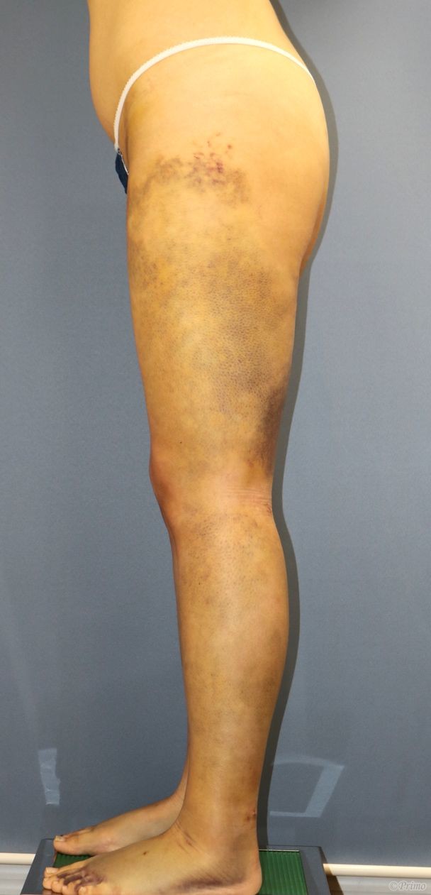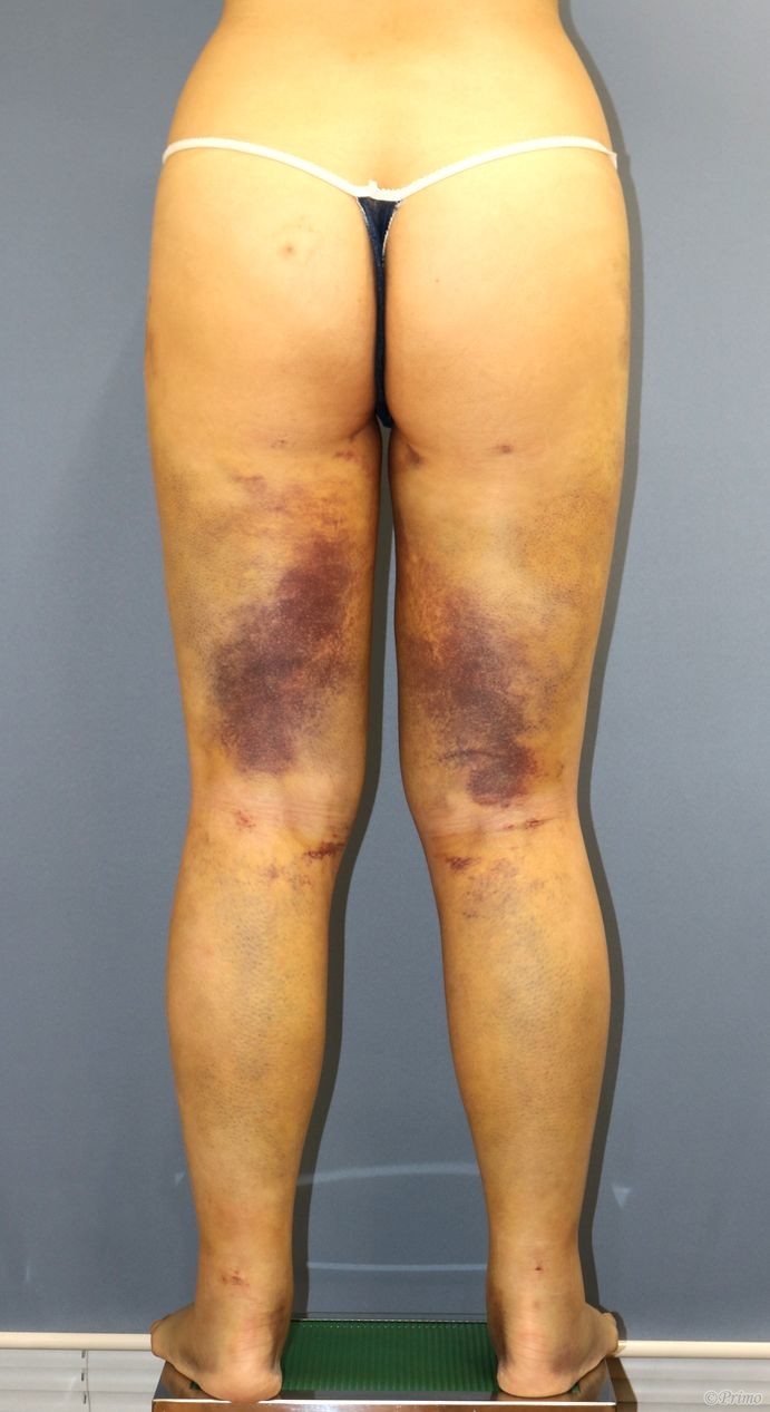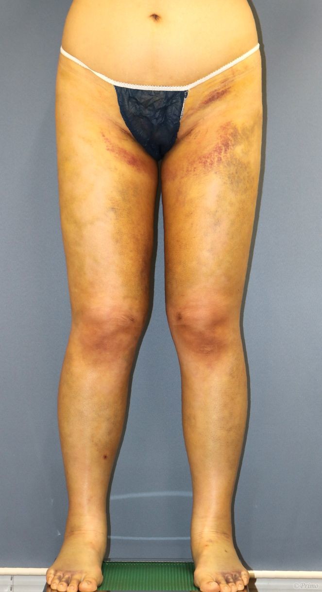 大腿全周+下腿脂肪吸引手術後1週間です。