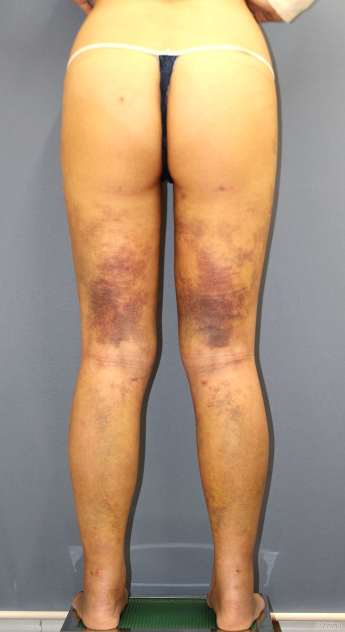 大腿前面から800cc、後面から1400cc、下腿から450cc吸引しました。