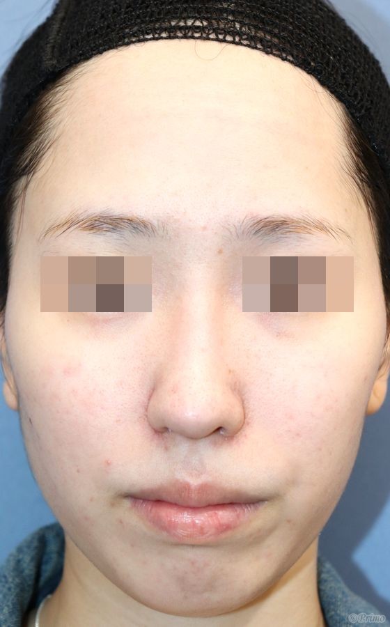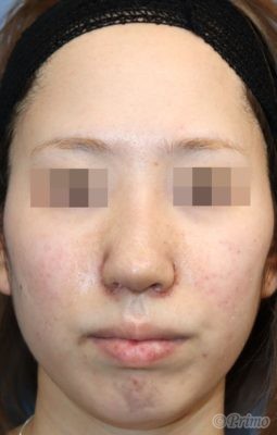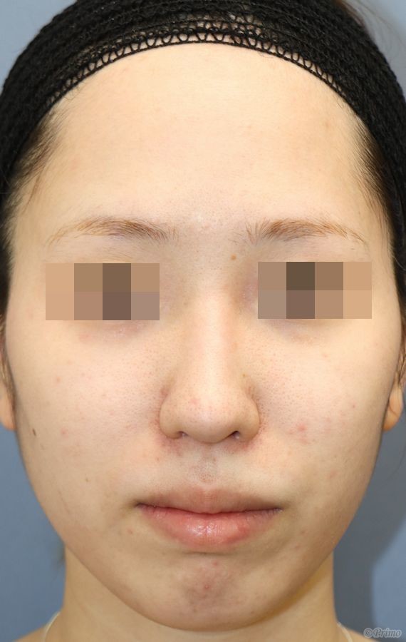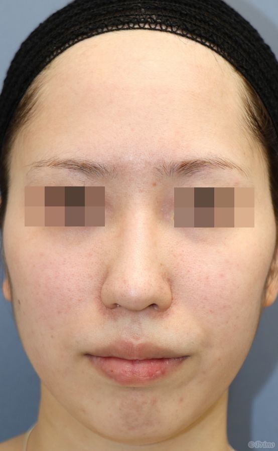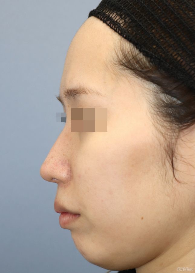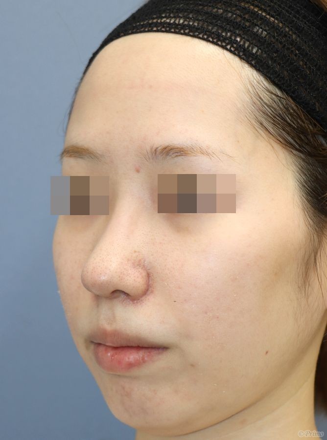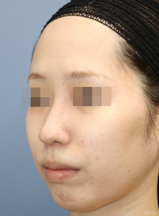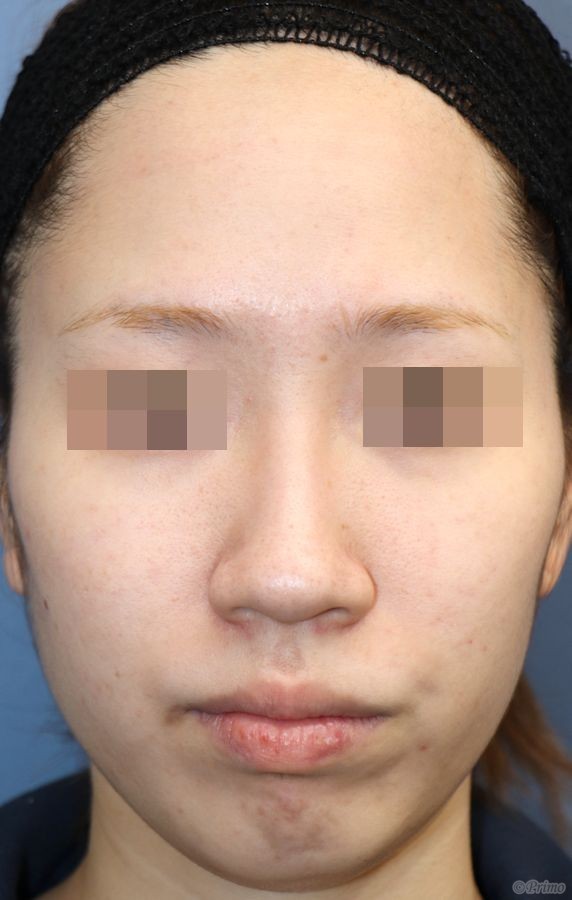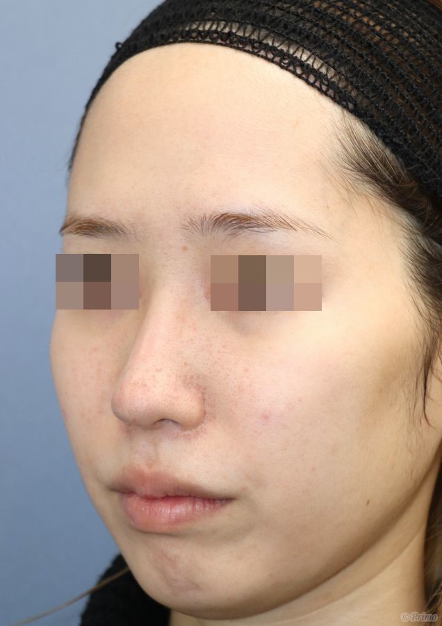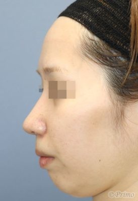 鼻翼縮小術(外側法)+鼻中隔延長術+鼻背部軟骨移植術+鼻尖縮小術後3ヶ月の経過写真です。