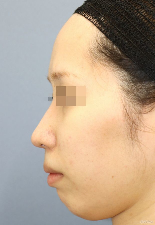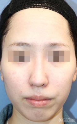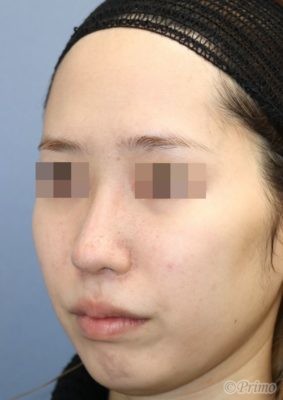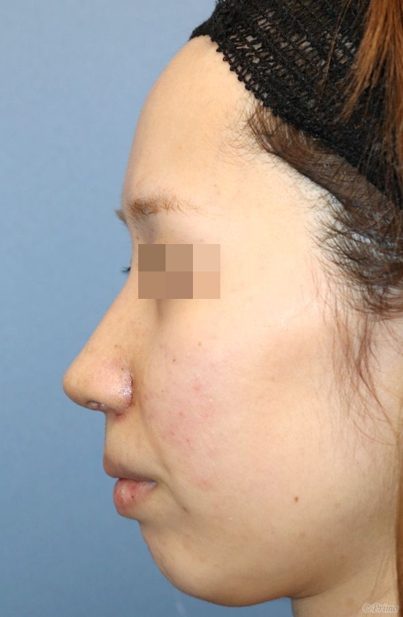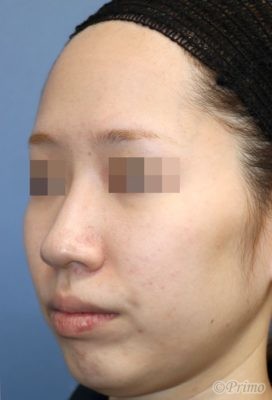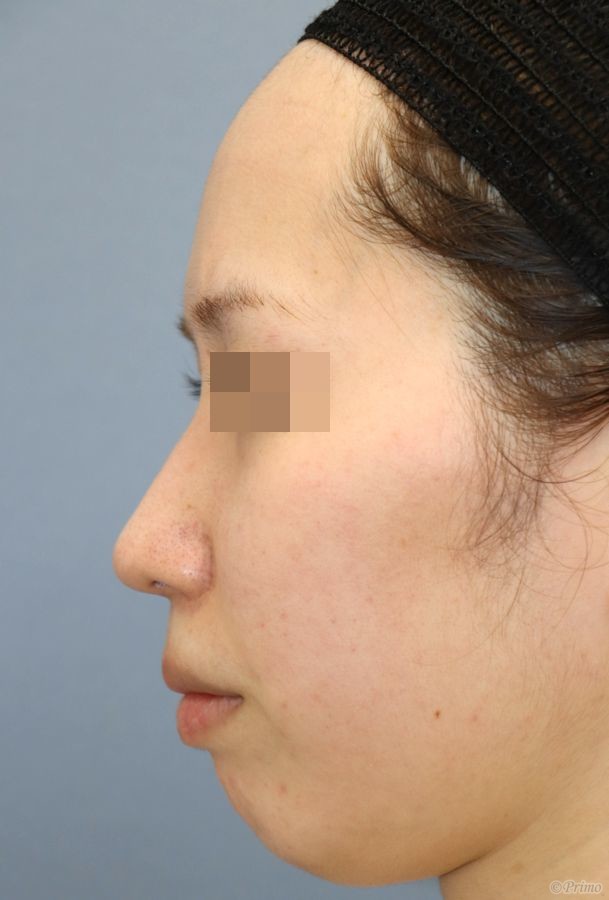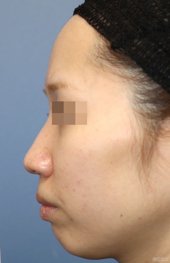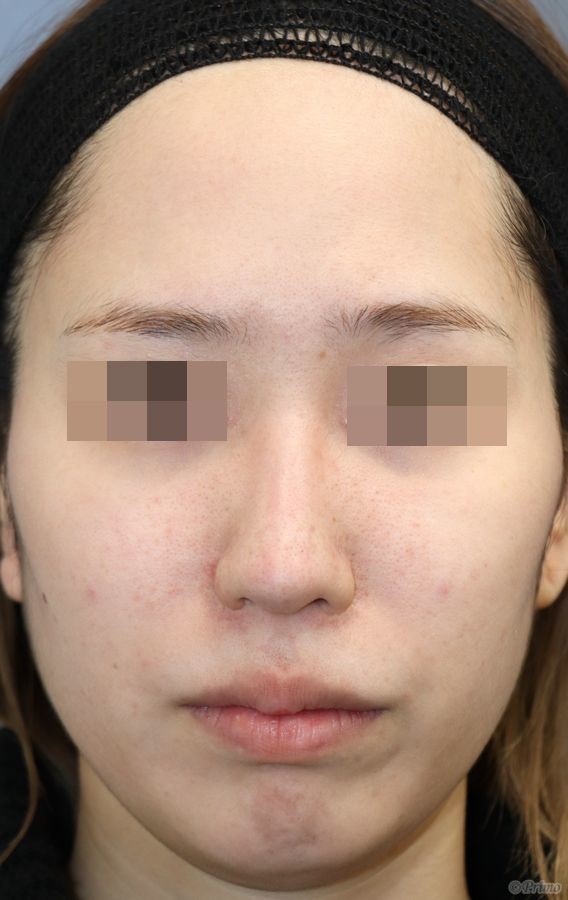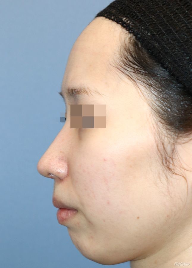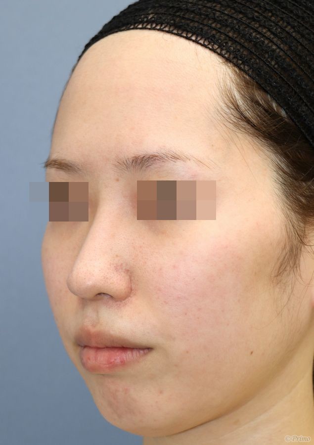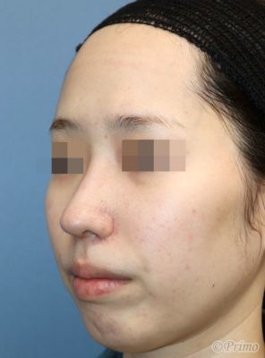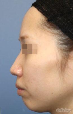 鼻翼縮小術(外側法)+鼻中隔延長術+鼻背部軟骨移植術+鼻尖縮小術後3ヶ月の経過写真です。
