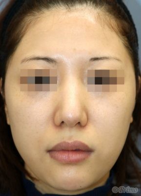 鼻中隔延長術+他院鼻プロテーゼ入れ替え術+眉間プロテーゼ手術+アゴプロテーゼ手術後2ヶ月です。