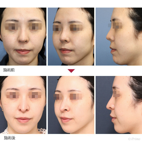 当院で鼻中隔延長術+他院鼻プロテーゼ加工術+頬部脂肪吸引を行いました。