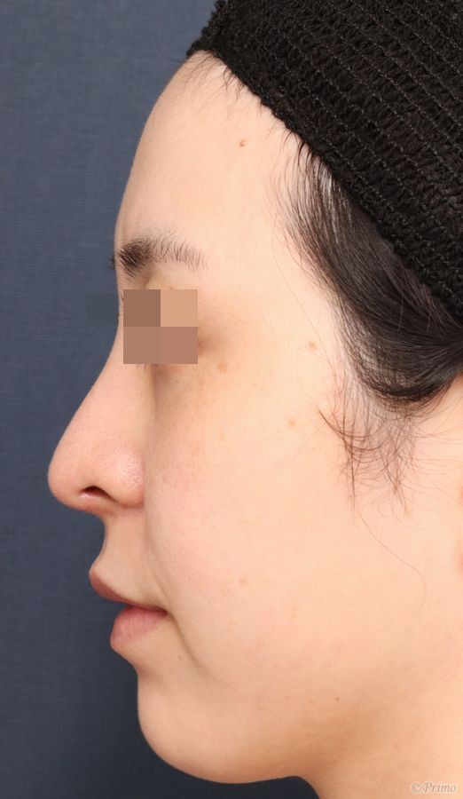 鼻中隔延長術+他院鼻プロテーゼ加工術+頬部脂肪吸引手術後3ヶ月です。