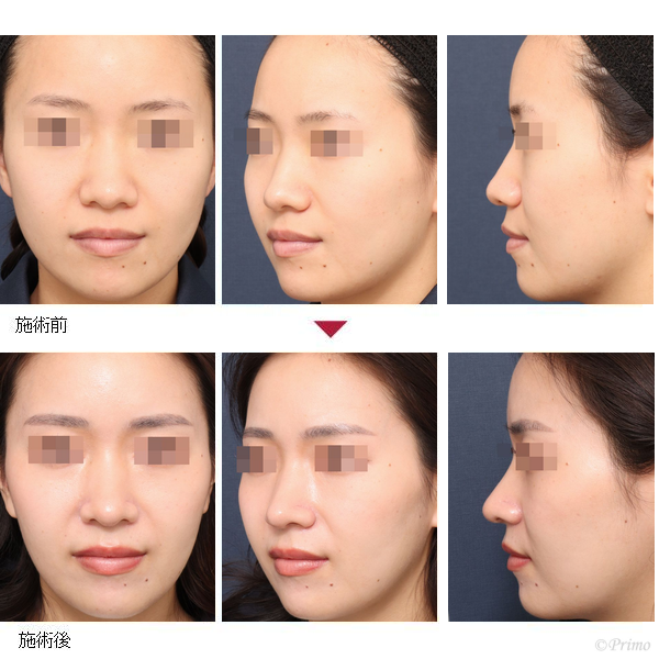 鼻中隔延長術+鼻背部軟骨移植術+鼻尖形成術+鼻翼挙上術後9ヶ月の経過写真です。