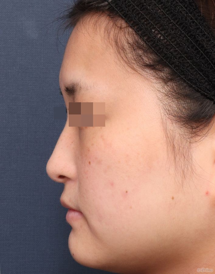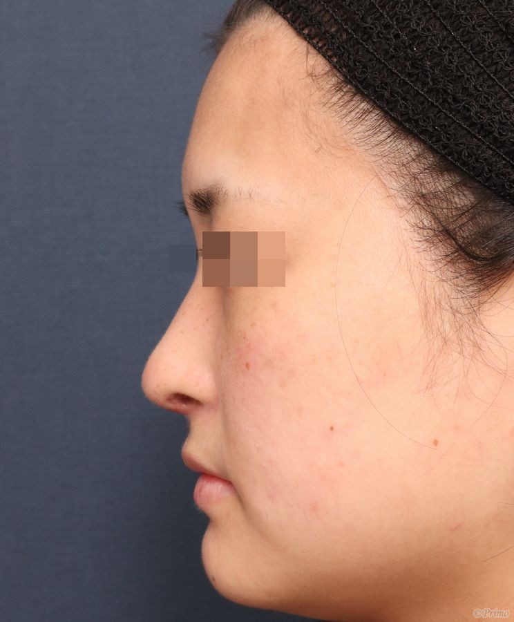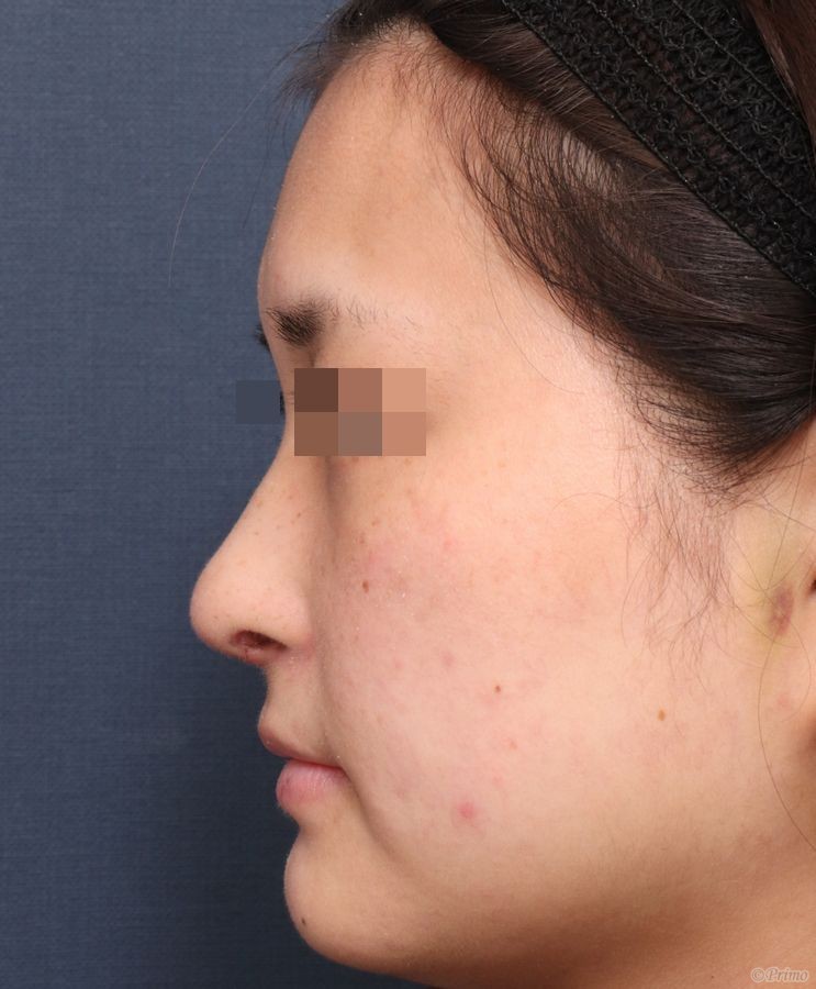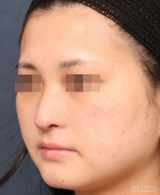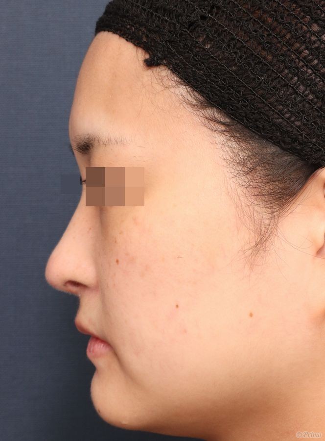 鼻中隔延長術+鼻背部軟骨移植術+鼻尖形成術後3ヶ月の経過写真です。