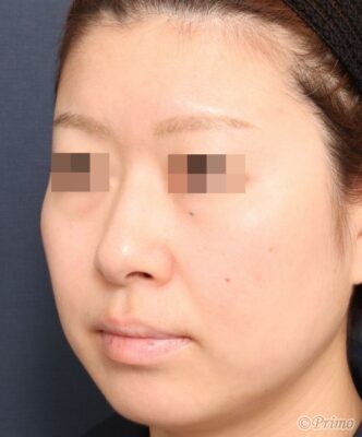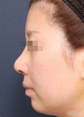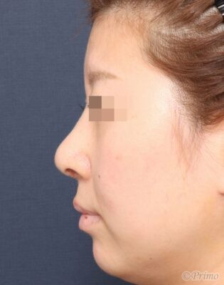 鼻中隔延長術、眉間プロテーゼによって眉間から鼻先までバランス良く高くなりました。