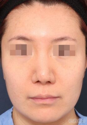 鼻中隔延長術(肋軟骨+耳介軟骨)+整鼻術+鼻尖形成術+鼻背部軟骨移植術後3ヶ月です。