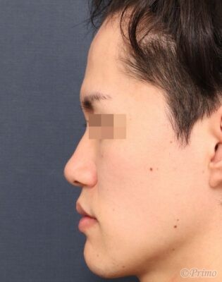 鼻中隔延長術、眉間プロテーゼによって眉間から鼻先にかけてバランス良く高くなりました。