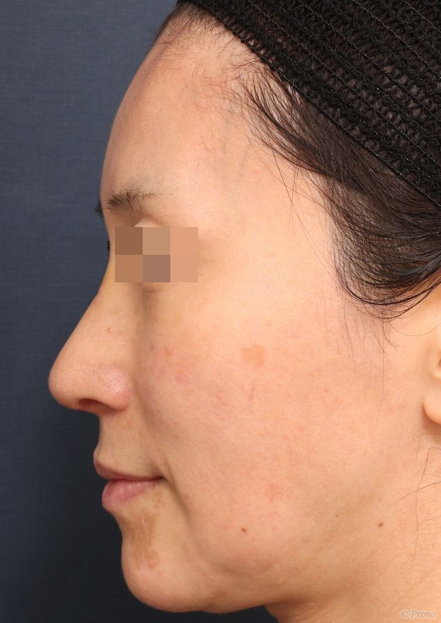 鼻中隔矯正術+鼻中隔延長術+鼻背部軟骨移植術+鼻尖形成術後3ヶ月の経過写真です。