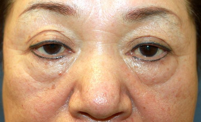 下眼瞼切開術(ハムラ法)手術後6ヶ月の経過写真です。