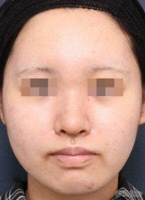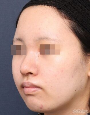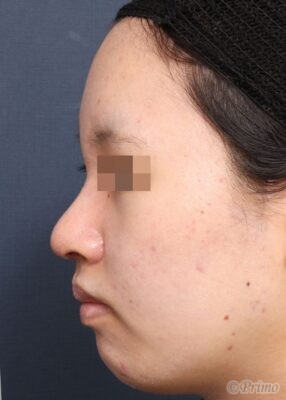 鼻先が大きいのが気になり高さを出して控えめにしたい、小鼻をもっと小さくしたい、鼻筋を高くしたいというご要望から、当院で鼻中隔延長術+眉間プロテーゼを行いました。