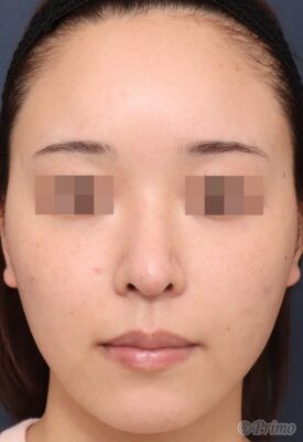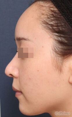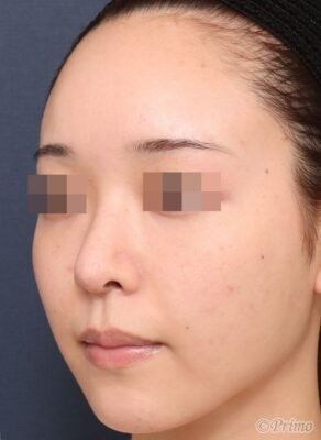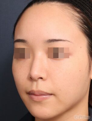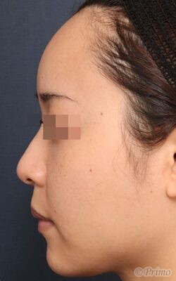 他院で鼻先の手術をされた方ですが、もう少し鼻先を細く下へ向けたいのと、ハンプをカモフラージュしたい目的で、当院で鼻中隔延長術、鼻背軟骨移植、他院修正術を行いました。