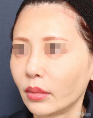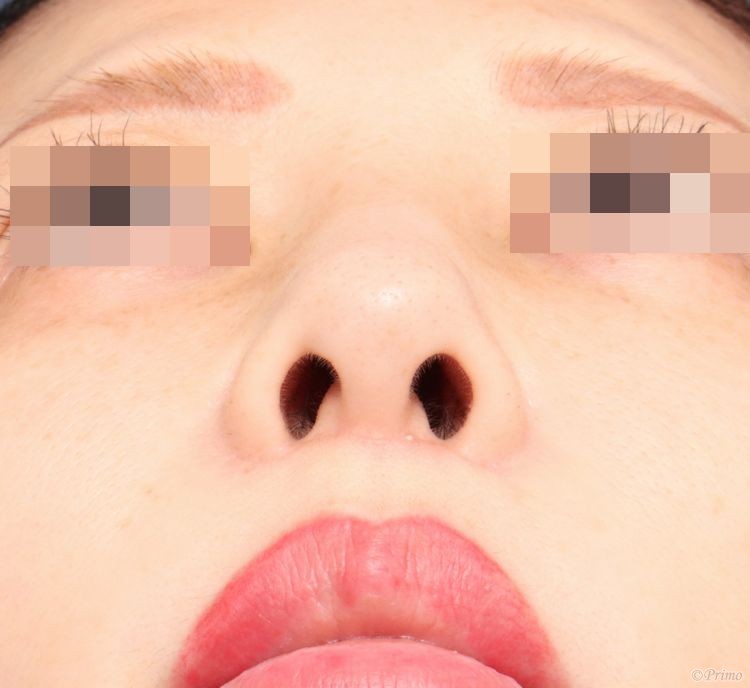 手術前の正面です。 鼻先が丸いのを嫌い細くしたいというご要望から、 当院で鼻尖縮小術(3D法)を行いました。 鼻尖縮小術(3D法)後2週間の経過写真です。 術後は鼻先が細くスリムになりました。 手術前の斜めからです。 手術後2週間の斜めからです。 鼻先が細くなり、ツンと高くなりました。 手術前の横からです。 手術後2週間の横からです。 手術前の下からです。 手術後2週間の下からです。 鼻先の丸みがなくなり、細くなりました。 ・費用(税込、麻酔代別) 鼻尖縮小術3D法 ¥385,000 ・リスク・副作用(起こり得る可能性のあること) 腫れ、内出血、違和感 鼻先の知覚低下 左右差 鼻づまり 鼻先が硬くなる 鼻尖縮小術3D法(鼻尖縮小術+鼻翼軟骨移植術) にほんブログ村 美容外科ブログランキングへ Tags:鼻尖縮小術