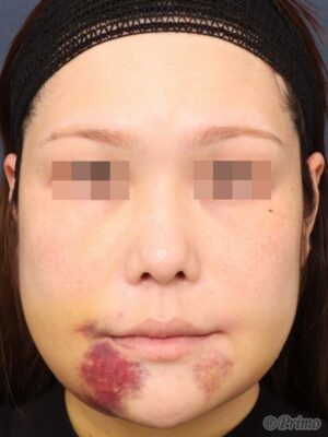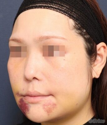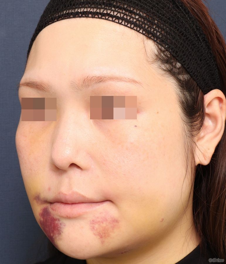 手術前の正面です。 骨を削ってエラを小さくしたいというご要望から、 当院で下顎角形成術を行いました。 下顎角形成術後1週間の経過写真です。 まだ腫れや内出血が見られますが、 落ち着いてくると下顎角形成術の効果が現れてきます。 手術前の斜めからです。 手術後1週間の斜めからです。 手術前の横からです。 手術後1週間の横からです。 ・費用(税込、麻酔代別) 下顎角形成術 ¥990,000 ・リスク・副作用(起こり得る可能性のあること) 腫れ、内出血、傷跡、血種 感覚異常 開口制限 たるみ 神経麻痺 段差、左右差 下顎角形成術 にほんブログ村 美容外科ブログランキングへ Tags:下顎角形成術