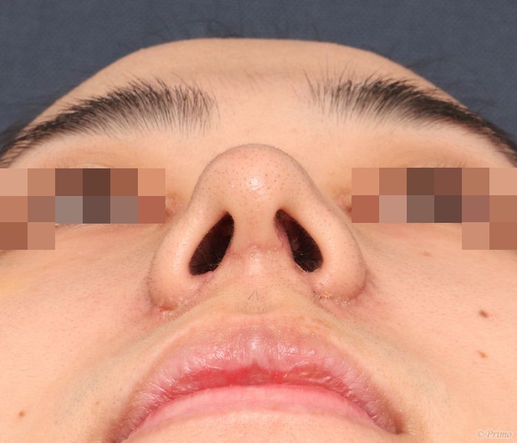 手術前の正面です。 術前は鼻筋が少し曲がってしまっていました。 小鼻も左右差をなくしたいというご要望から、 当院で鼻中隔矯正術+鼻中隔延長術+鼻尖形成術+鼻背部軟骨移植術+鼻翼縮小術(内側法+外側法)を行いました。 鼻中隔矯正術+鼻中隔延長術+鼻尖形成術+鼻背部軟骨移植術+鼻翼縮小術(内側法+外側法)手術後2週間の経過写真です。 鼻筋がまっすぐ通り、小鼻も形良く整いました。 手術前の斜めからです。 手術後2週間の斜めからです。 手術前の横からです。 手術後2週間の横からです。 鼻先が高くなり、鼻翼が控えめになりました。 鼻背部軟骨移植術によって鼻背ラインも整いました。 手術前の下からです。 手術後2週間の下からです。 下から見ても鼻の形がきれいに整いました。 ・費用(税込、麻酔代別) 鼻中隔延長術 ¥660,000 鼻背部軟骨移植術 ¥330,000 鼻翼縮小術(内側法+外側法) ¥495,000 鼻中隔矯正術(セット割引) ¥440,000 ・リスク・副作用(起こり得る可能性のあること) 腫れ、内出血、鼻出血、鼻づまり 鼻柱の傷跡 鼻先、耳介の知覚低下 鼻の傾き 鼻尖部の挙上ができない 鼻の形の左右差 鼻翼基部の傷跡 鼻尖部が丸く感じる 鼻中隔矯正術 鼻中隔延長術 鼻翼縮小術 鼻尖形成術 にほんブログ村 美容外科ブログランキングへ Tags:内側法外側法鼻中隔延長術鼻中隔矯正術鼻尖形成術鼻翼縮小術鼻背部軟骨移植術