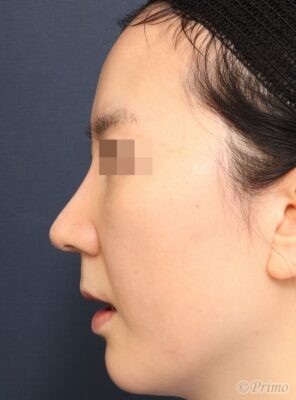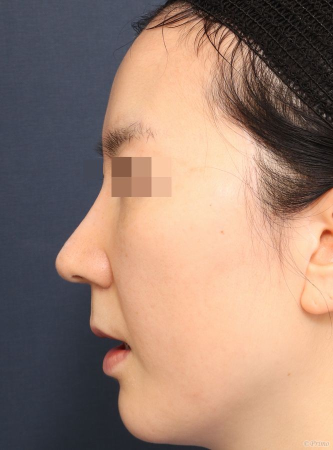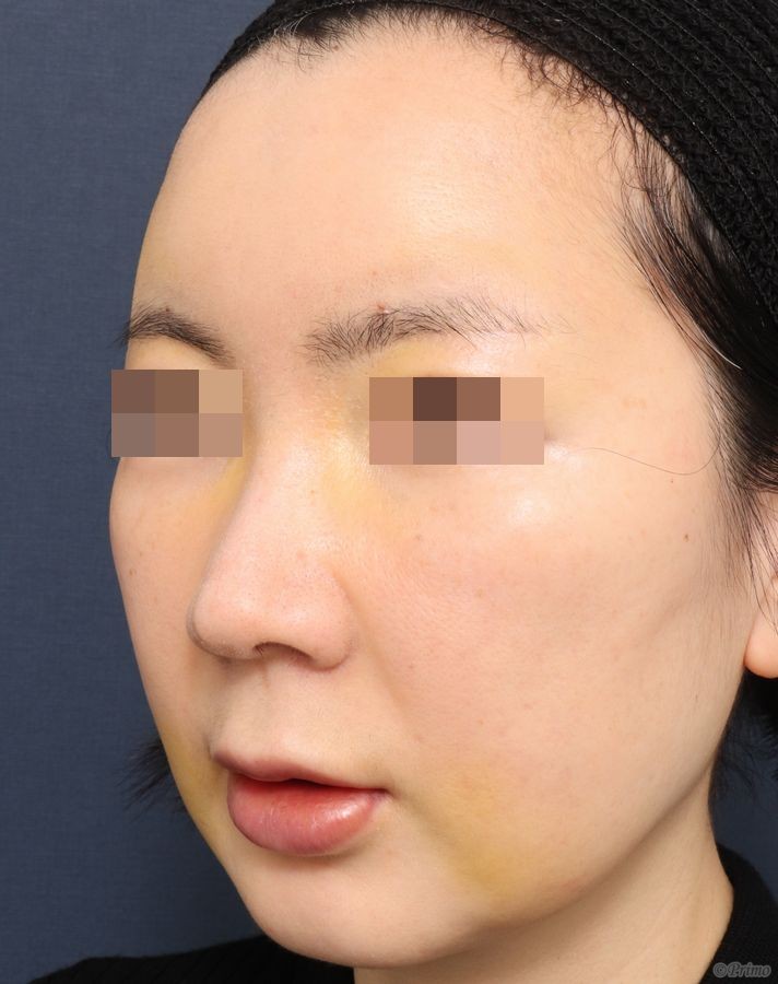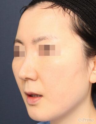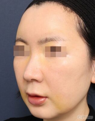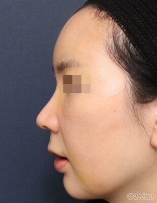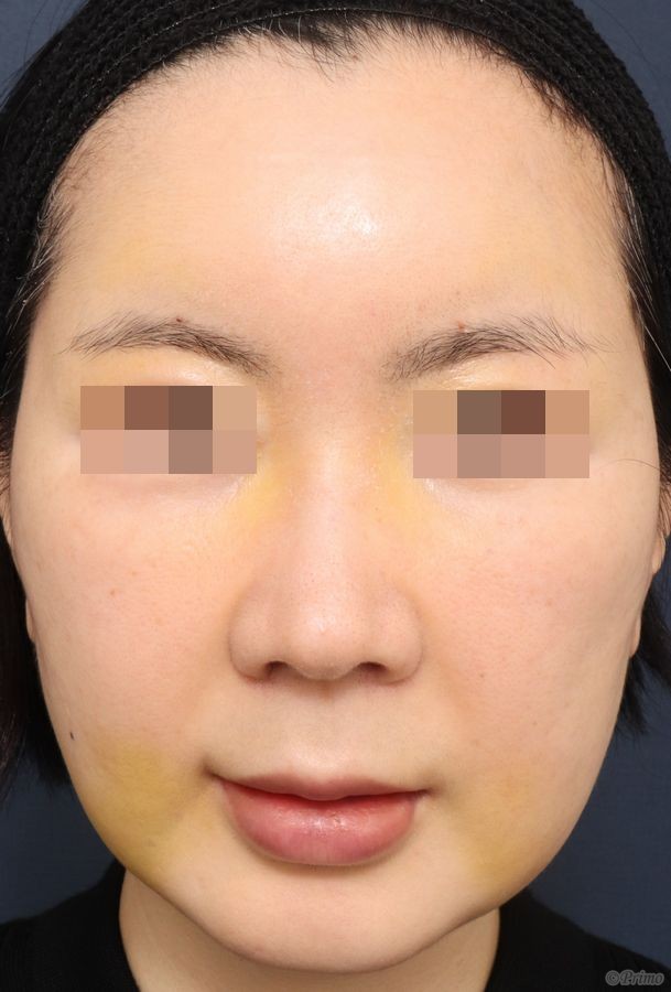鼻翼基部を持ち上げ、おでこを丸く、口唇をふっくらさせるために鼻翼基部プロテーゼ+前額・上下口唇脂肪注入を行いました。