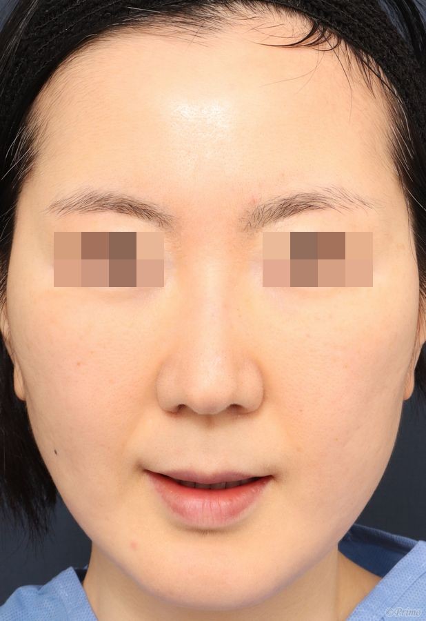 8ヶ月前に当院で鼻中隔延長術、鼻尖形成術、整鼻術、鼻背部軟骨移植術、頬部脂肪吸引、糸リフトを受けていらっしゃいました。