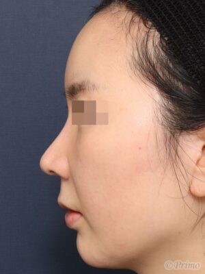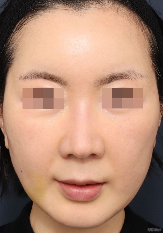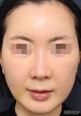 鼻翼基部を持ち上げ、おでこを丸く、口唇をふっくらさせるために鼻翼基部プロテーゼ+前額・上下口唇脂肪注入を行いました。