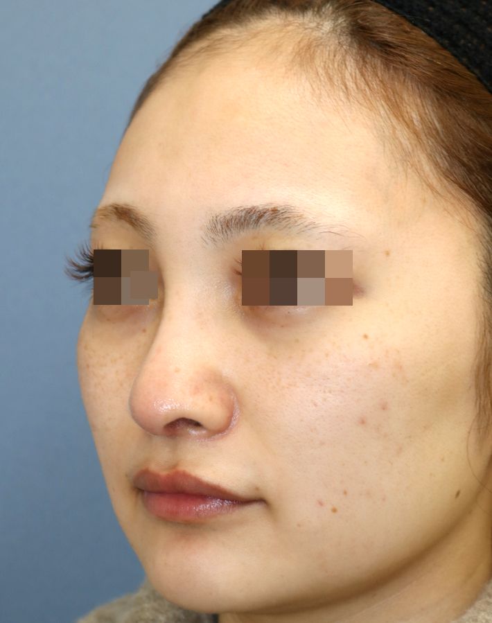 - 皮膚の伸びが悪い状態で無理に高くすることでリスクは高くなります。必要に応じ修正手術で矯正いたします。場合によっては鼻の高さを低くする必要があります。