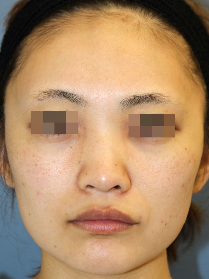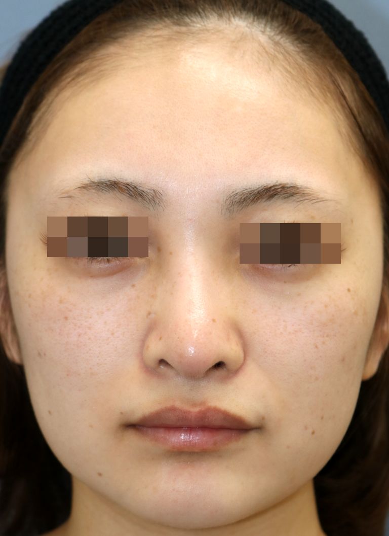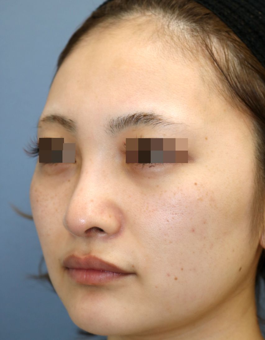 鼻中隔延長術+隆鼻術+眉間プロテーゼ手術後1ヶ月の経過写真です。