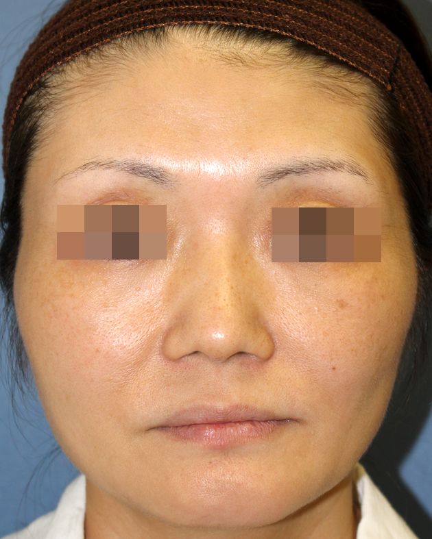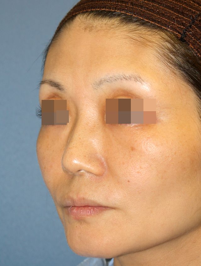 隆鼻術+眉間プロテーゼ手術後6か月の経過写真です。